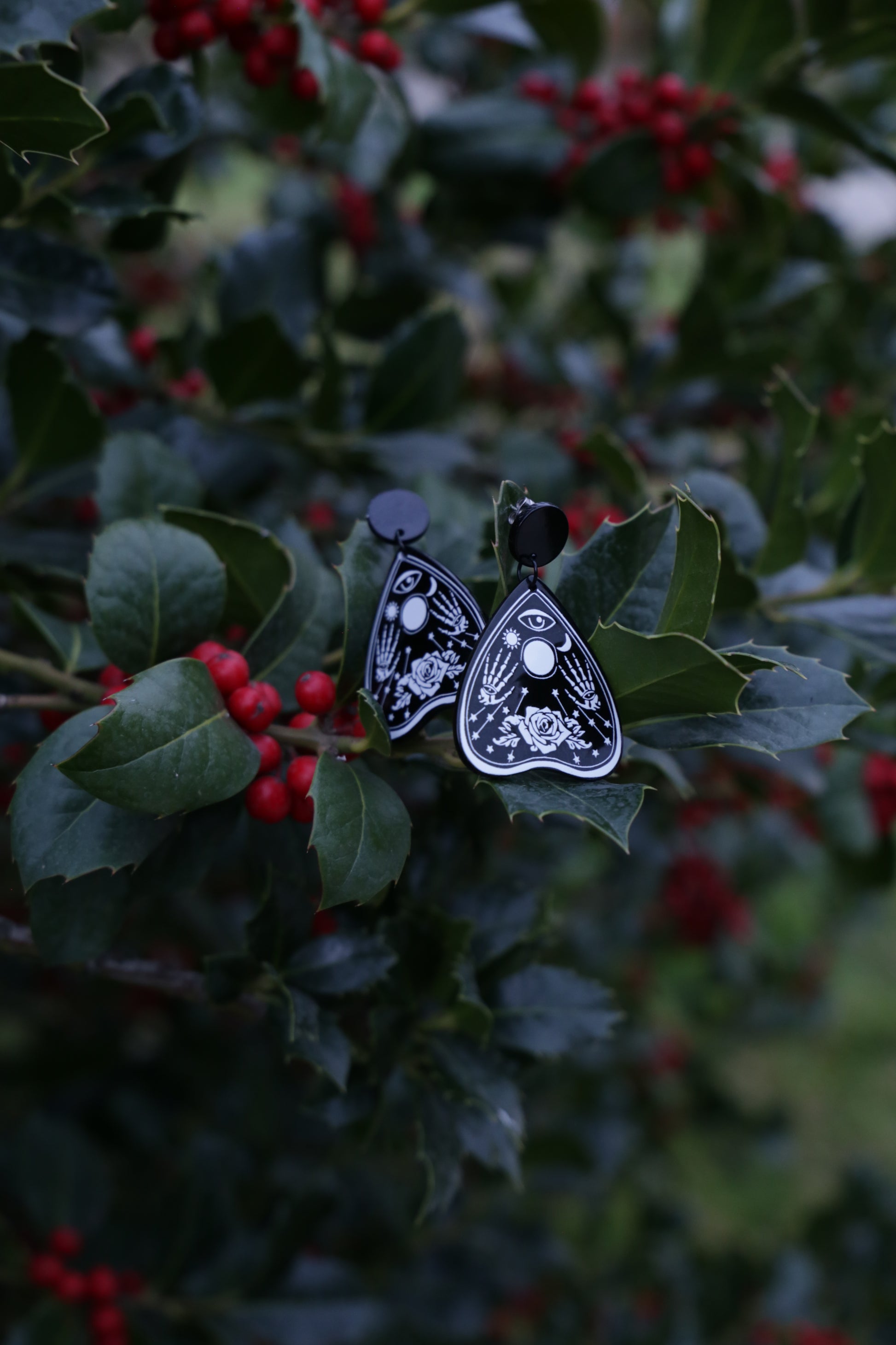 Estos pendientes únicos combinan la elegancia con un toque esotérico: péndulos inspirados en la mítica tabla Ouija, símbolos de misterio y exploración del más allá.