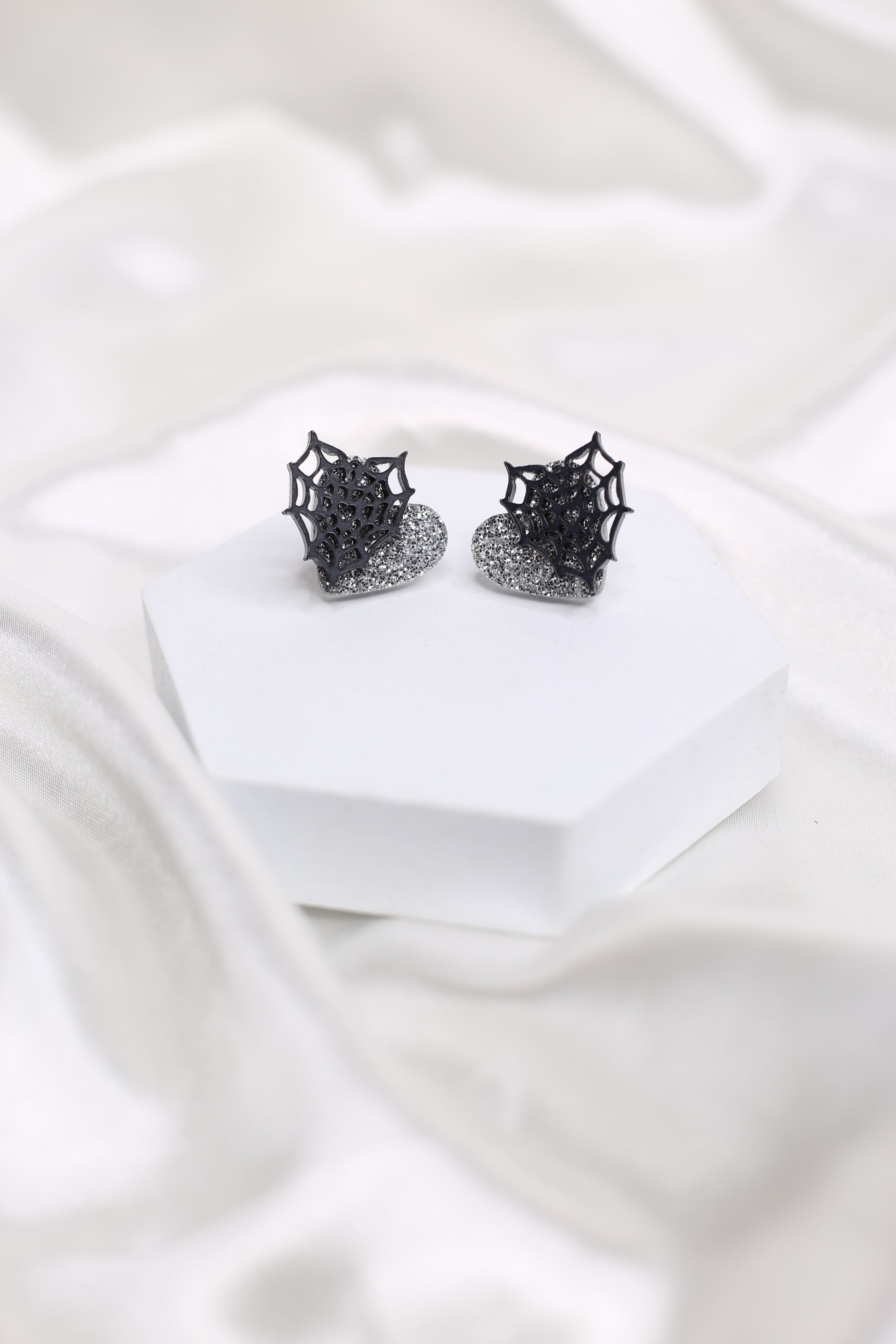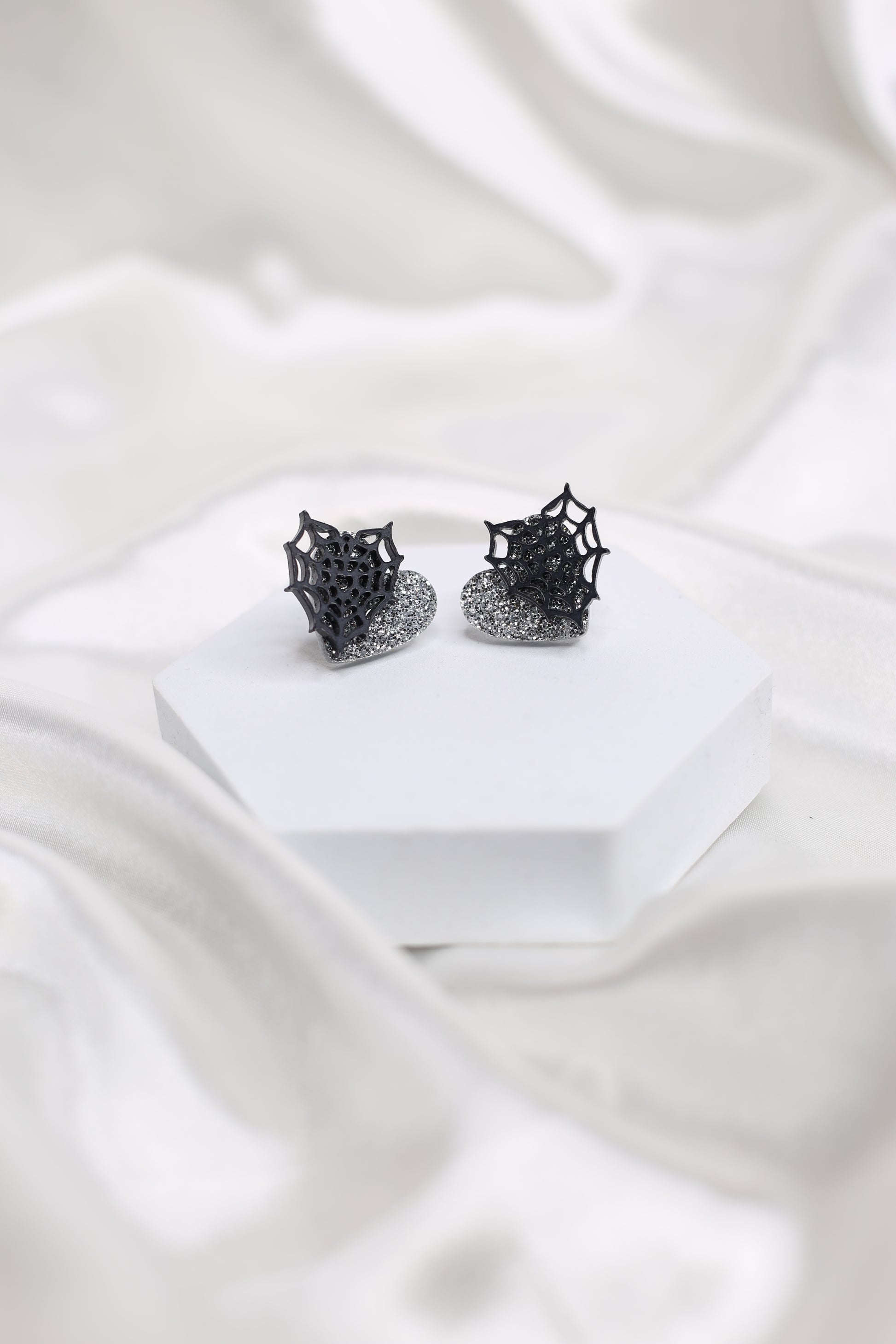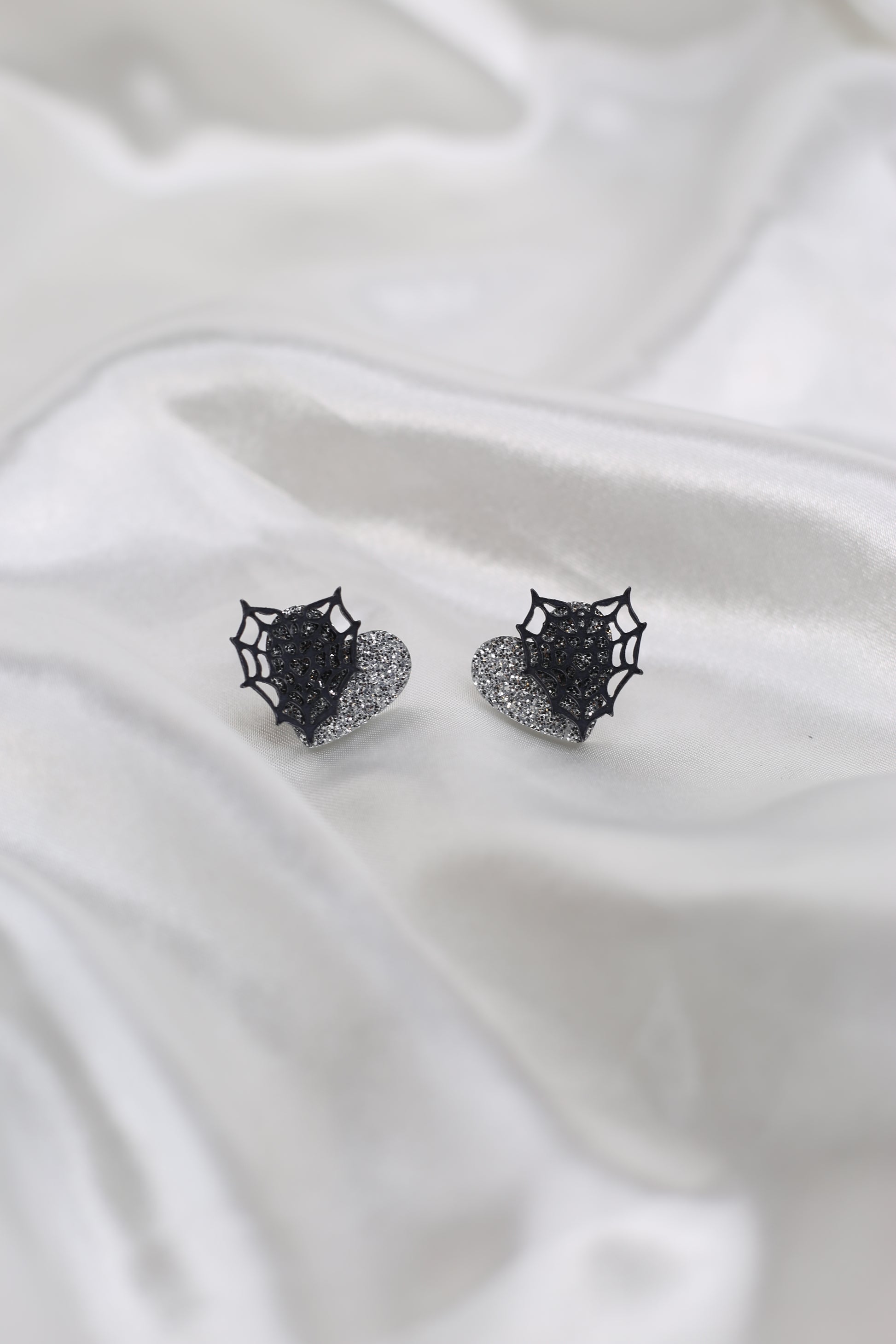 ✨ Estos pendientes de corazón gris con purpurina y una telaraña son un recordatorio de que la belleza puede surgir incluso en los lugares más inesperados. Representan la fortaleza y la resistencia en medio de los desafíos. Así como una telaraña es un símbolo de paciencia y creatividad, estos pendientes nos recuerdan que cada obstáculo puede convertirse en una oportunidad para brillar. 💫🕸️